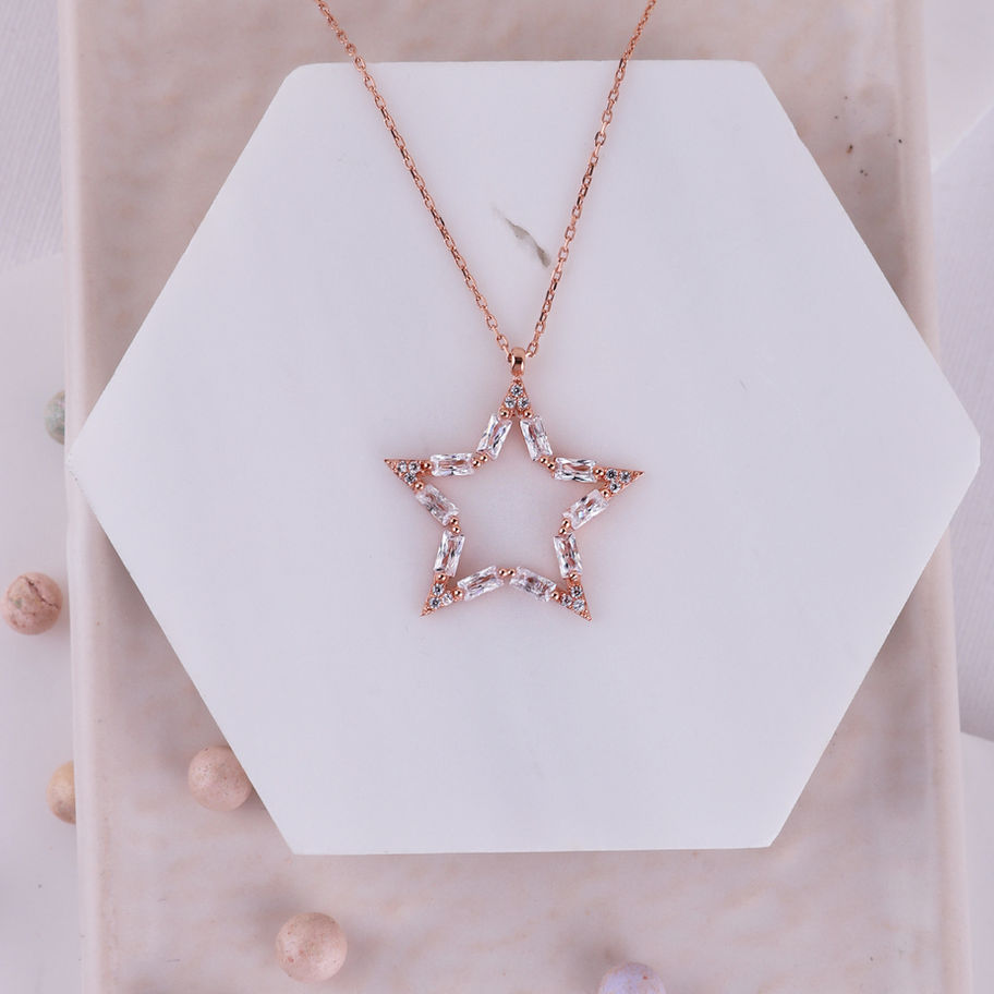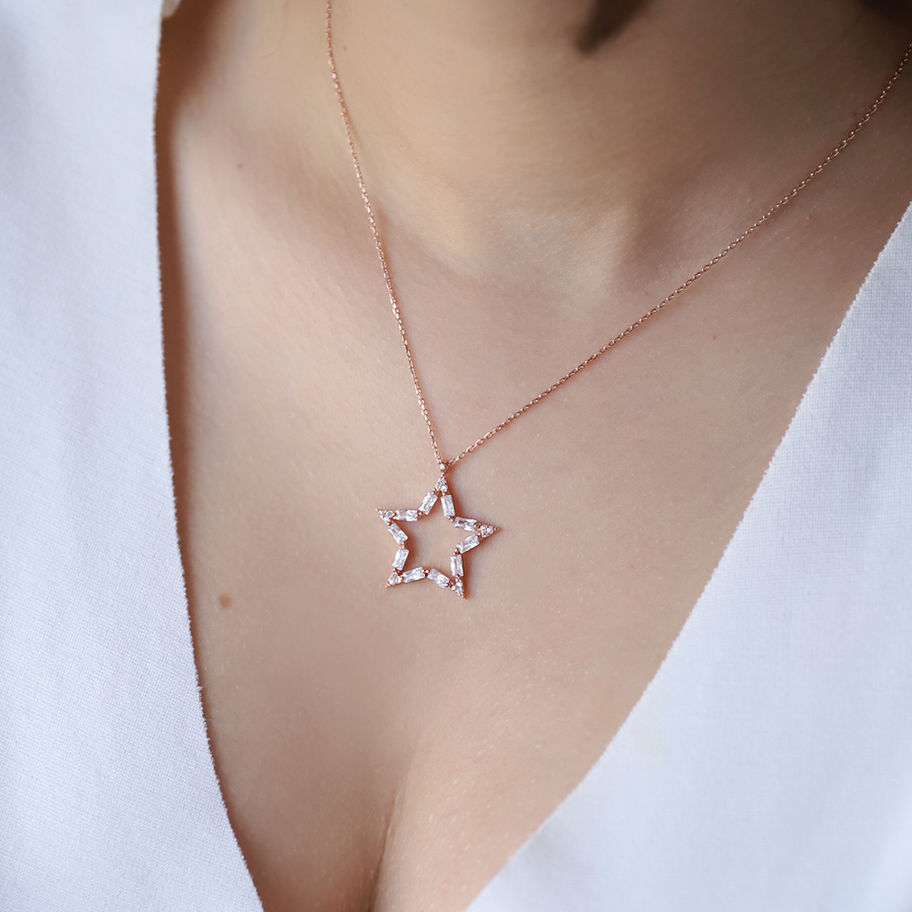 925 Ayar Gümüş Swarovski Baget Taşlı Yıldız Kolye